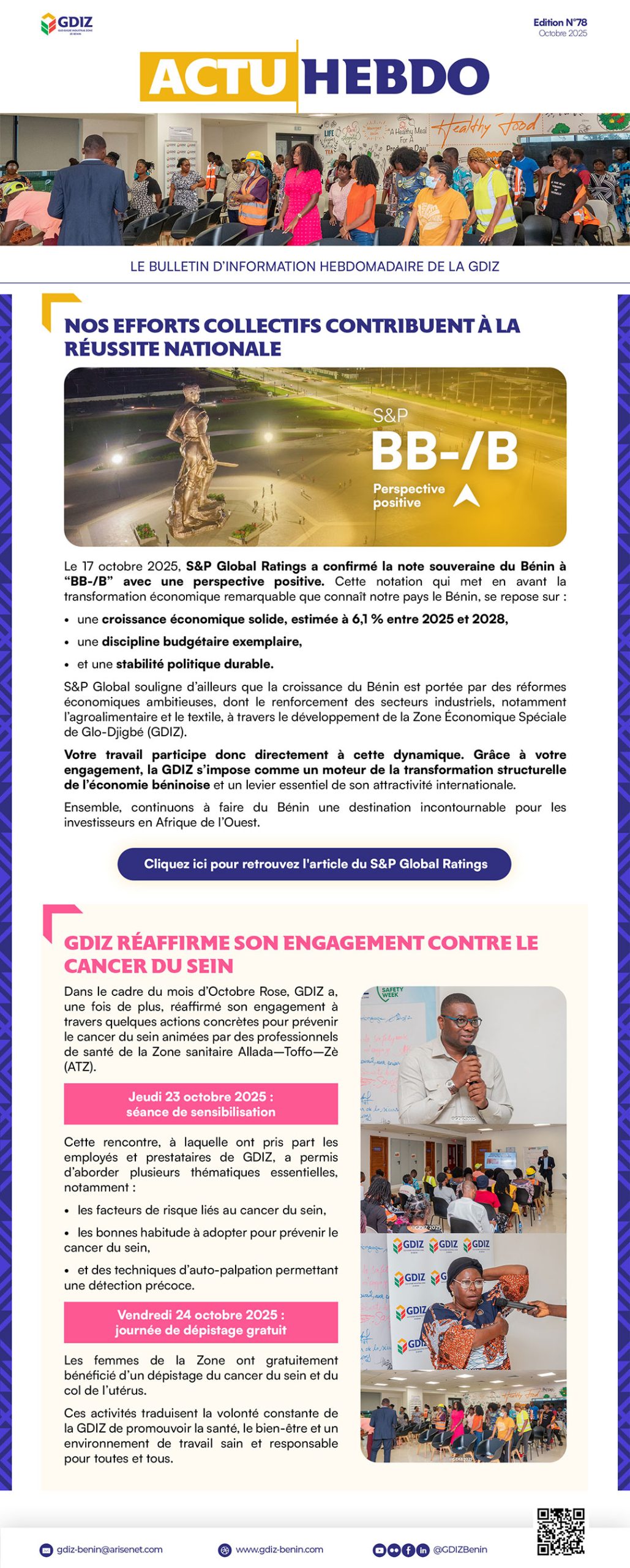 Dans le cadre du mois d’Octobre Rose, GDIZ a, une fois de plus, réaffirmé son engagement à travers quelques actions concrètes pour prévenir le cancer du sein animées par des professionnels de santé de la Zone sanitaire Allada–Toffo–Zè (ATZ).