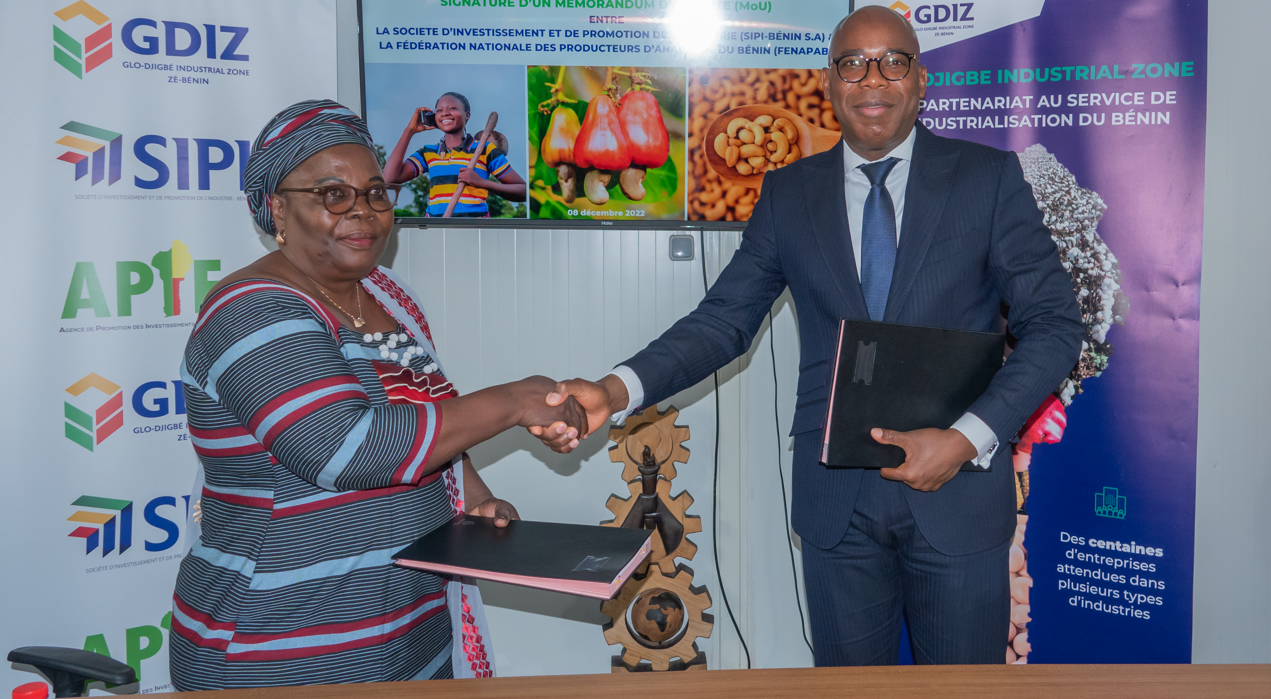 Ce 8 décembre, la Fédération Nationale des Producteurs d’Anacarde du Bénin (FENAPAB), le DG de SIPI Bénin, le DG de l’Agri-Vlaue Chain SIPI, la présidente du FENAPAB, des acteurs de Pro-Cashew et de l’Agence Territoriale de Développement Agricole, se sont réunis pour la signature d’un mémorandum d’entente entre la GDIZ et la FENAPAB !