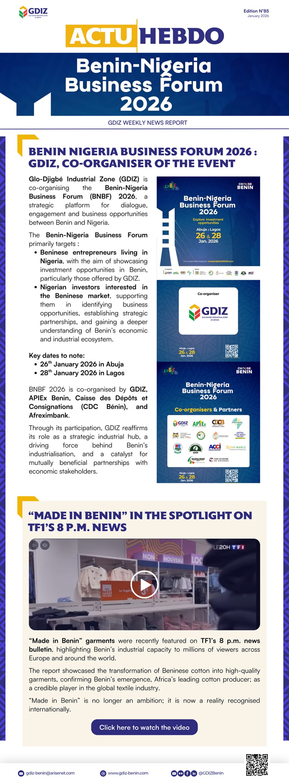 Glo-Djigbé Industrial Zone (GDIZ) is co-organising the Benin-Nigeria Business Forum (BNBF) 2026, a strategic platform for dialogue, engagement and business opportunities between Benin and Nigeria.